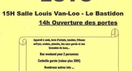 Loto du Club Taurin le BastidonDimanche 29 mars 202615h Salle Louis Van-Loo - le Bastidon14h Ouverture des portesNombreux lots