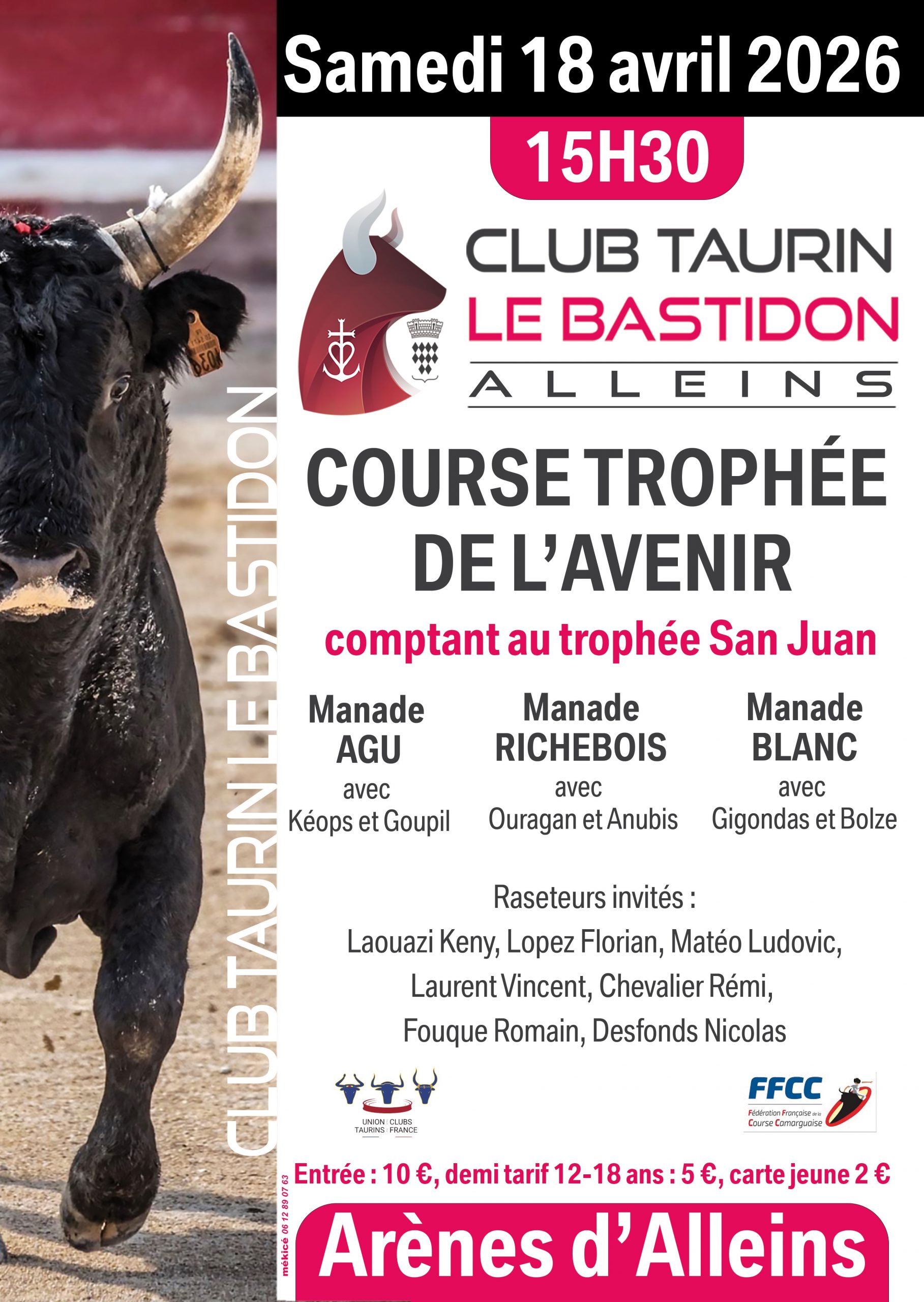 Club Taurin Le Bastidon – Course Trophée de l’avenir – samedi 18 avril 2026 – 15h30 aux Arènes